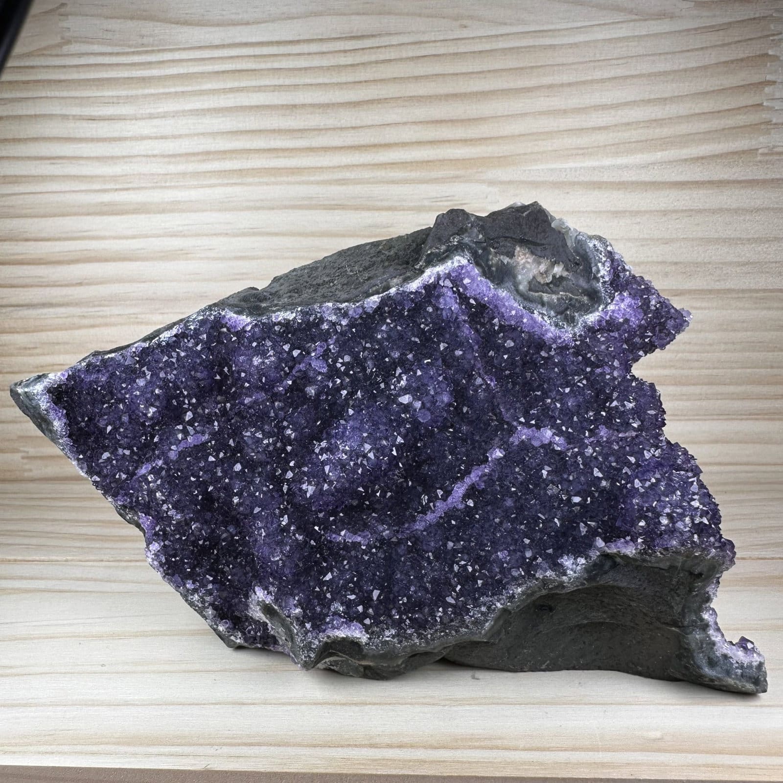 Mooie, ruwe amethist cluster uit Brazilë. Paarse kleur en goede kwaliteit. Je ontvangt exact het stuk dat is afgebeeld op de foto’s