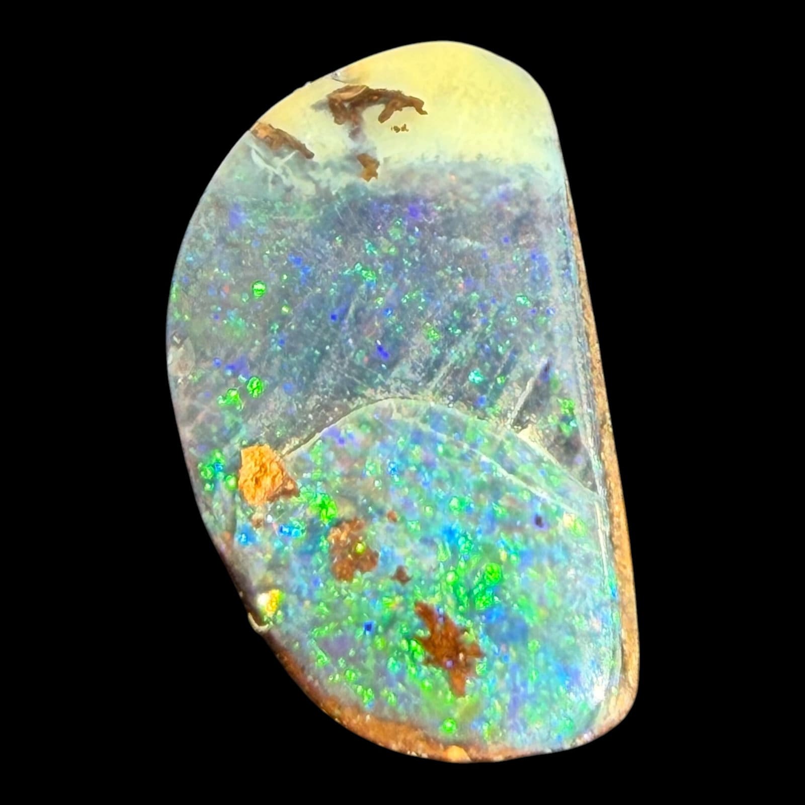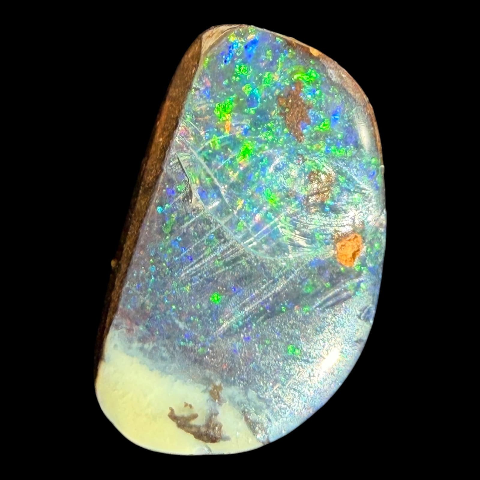 Deze opalen komen uit Australië en staan bekend om hun diepe kleuren en intense spel van licht. Opaal ontstaat wanneer silica-rijk water langzaam uithardt in scheuren en holtes van het gesteente. Tijdens dit proces worden microscopische silica bolletjes gevormd die het licht breken en zorgen voor het kenmerkende kleurenspel.