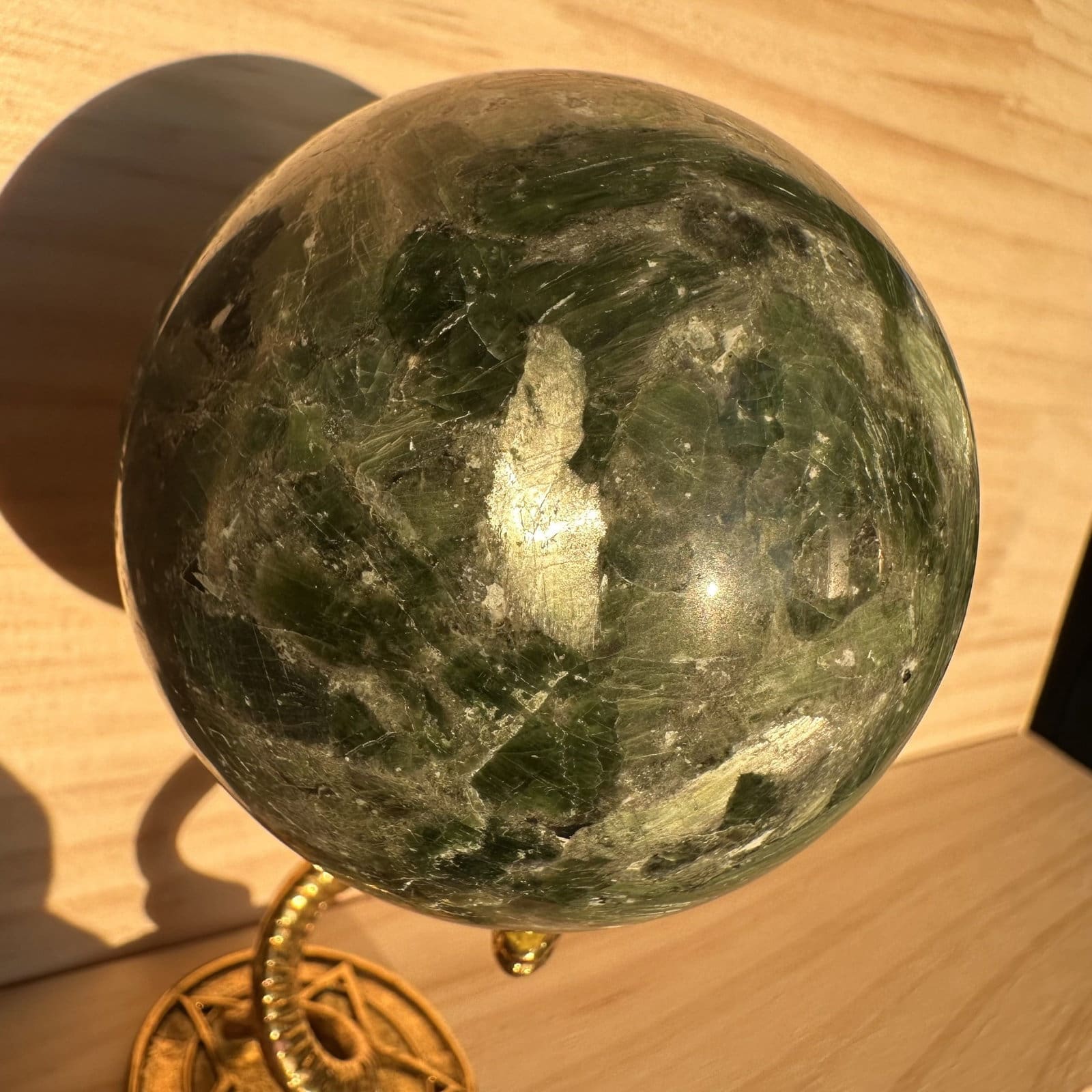 Mooie, met de hand geslepen bol van Diopside. Je ontvangt het exacte stuk zoals afgebeeld op de foto’s.