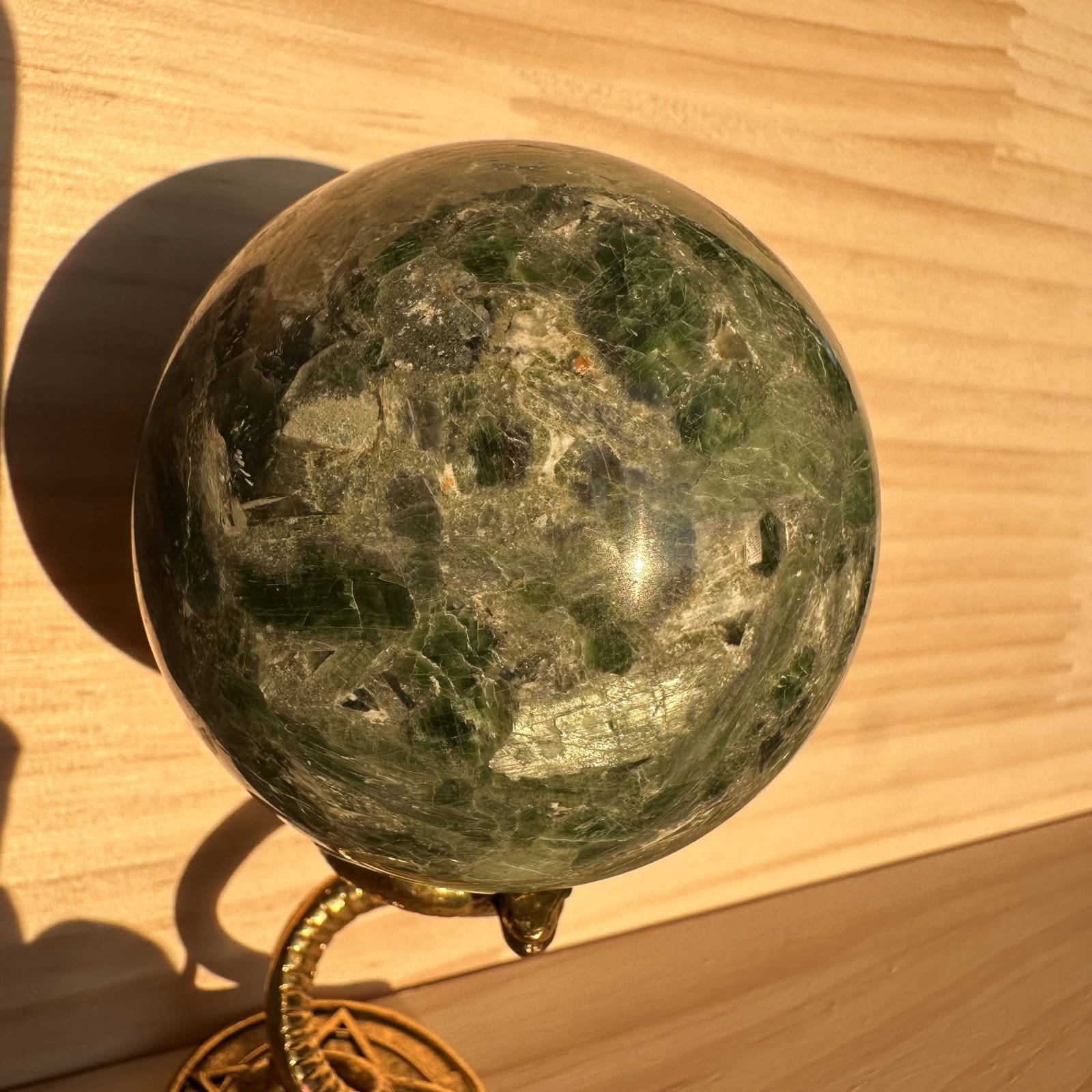 Mooie, met de hand geslepen bol van Diopside. Je ontvangt het exacte stuk zoals afgebeeld op de foto’s.
