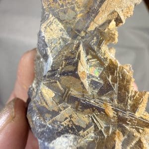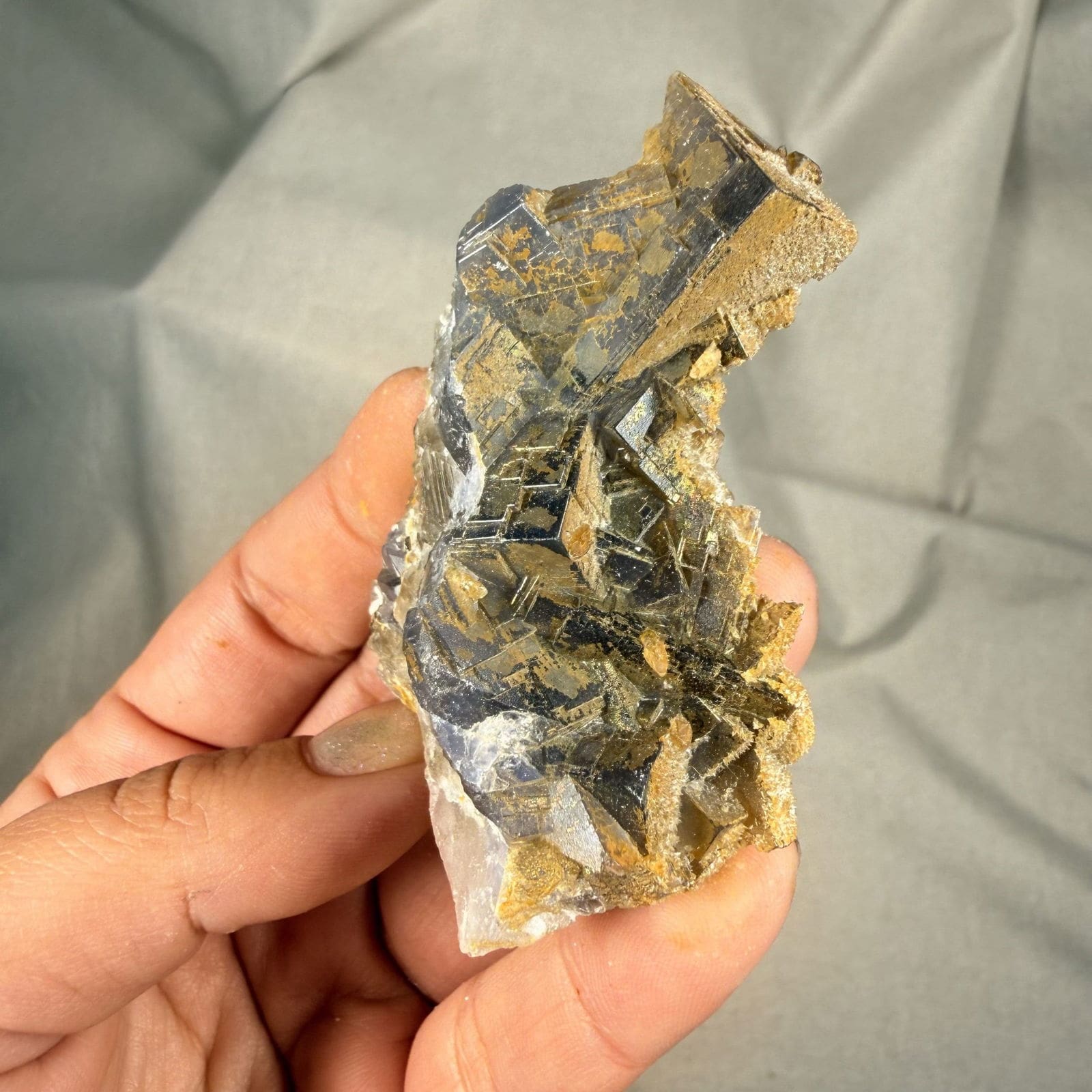 De fluoriet zelf is gevormd uit warme mineraalrijke oplossingen die langzaam afkoelden in scheuren en holtes van het gesteente. De combinatie van de vaak heldere tot zachtgekleurde fluoriet met deze iriserende coating maakt elk stuk uniek. Geen enkel kristal reflecteert het licht op exact dezelfde manier.