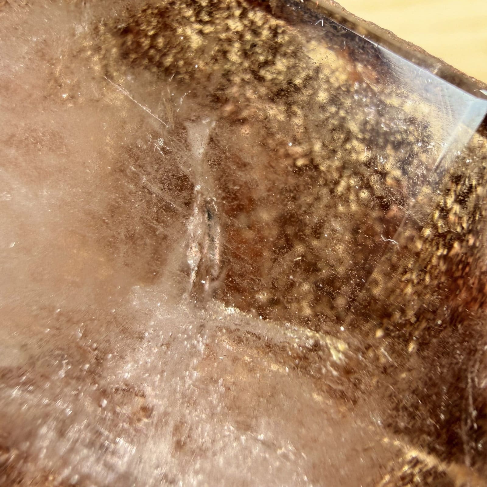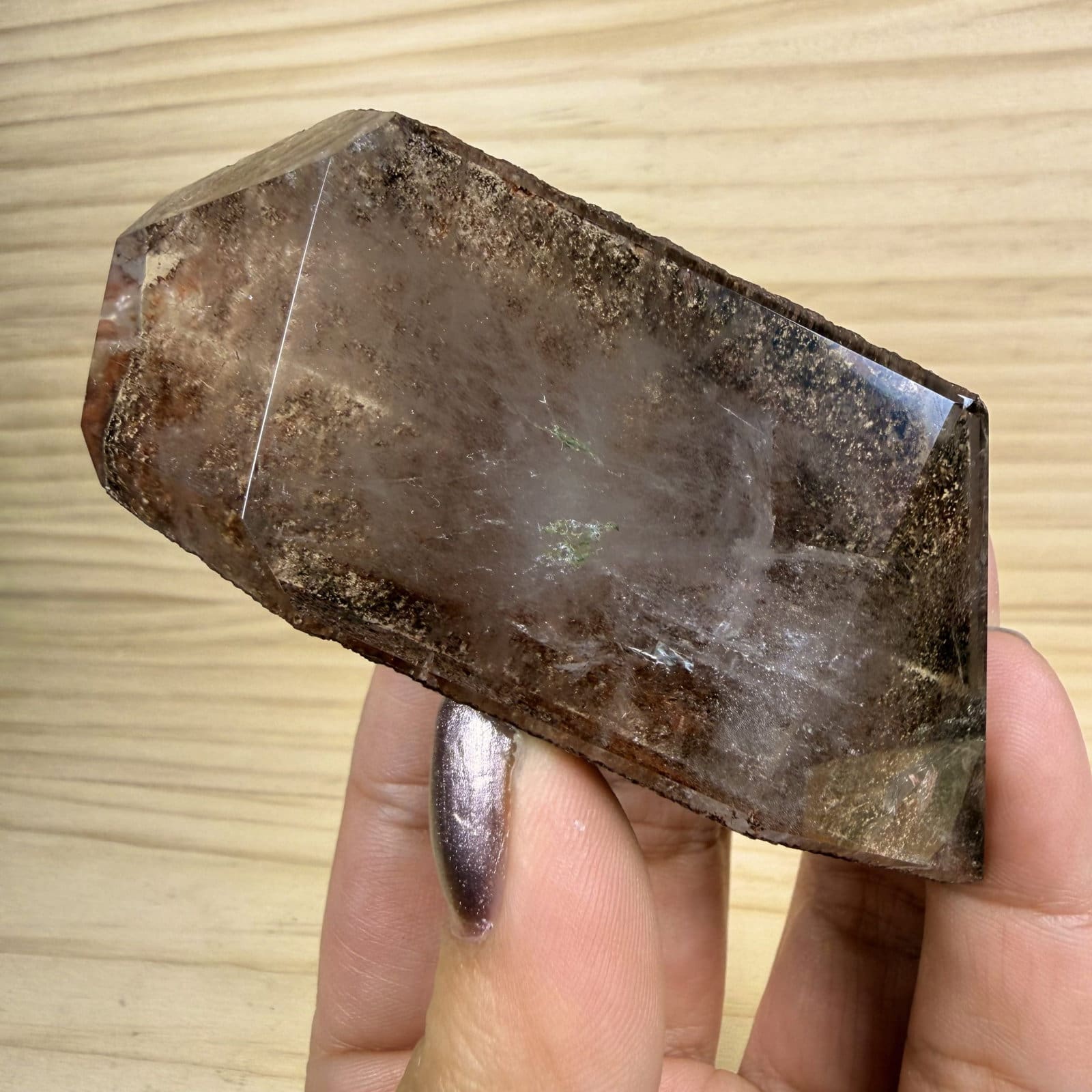 Mooi zuivere bergkristal, waar hematiet overheen is gegroeid. Je ontvangt exact het stuk zoals afgebeeld op de foto’s.Â