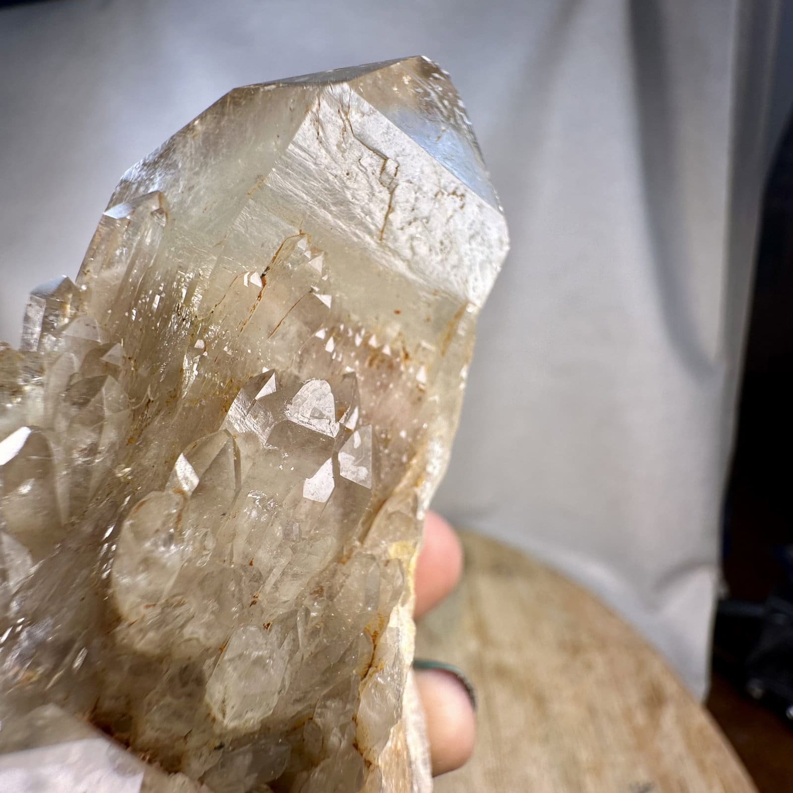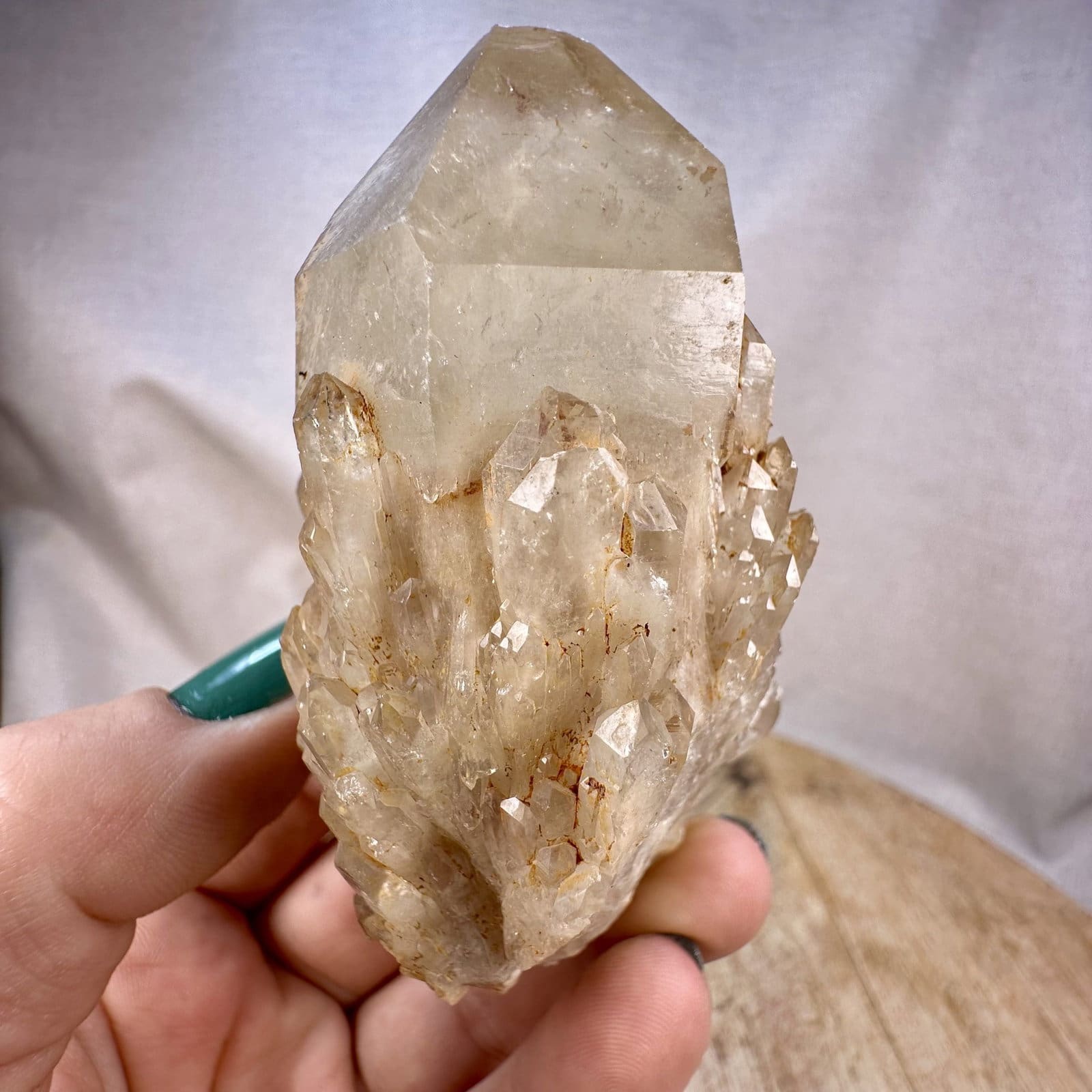 Citrien is één van de meest zeldzame kwarts varianten die er is. De mooie gouden kleur ontstaat meestal door aluminium in combinatie met natuurlijke straling. Dit proces kan wel jaren duren! De kwarts uit Lwena kenmerkt zich door de typische groei waarbij je vaak één groot kristal ziet, omringt door meerdere kleine kristallen. Omdat in Lwena de kwartsen vaak met een boor en schep uit de grond worden gehaald, zijn er weinig clusters die volledig gaaf zijn. Des te meer bijzonder is het wanneer er wel zo’n stuk tussen zit.