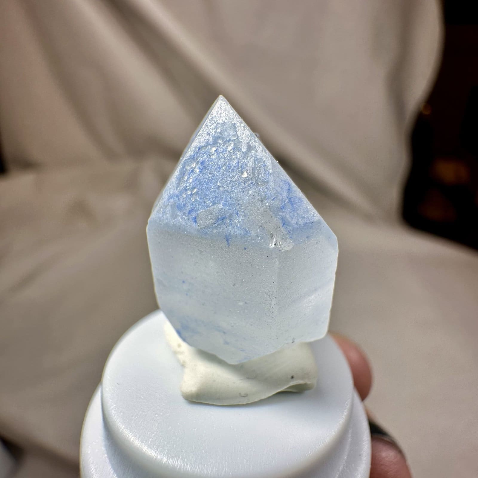 Deze naald dumortiriet in kwarts uit Bahia in Brazilië is een prachtig voorbeeld van hoe twee mineralen samen iets heel bijzonders kunnen vormen. In helder tot melkachtig kwarts lopen fijne naalden van diepblauwe dumortiriet, soms als losse vezels en soms als compacte bundels. Het contrast tussen het frisse blauw en het lichte kwarts maakt elk stuk direct herkenbaar.