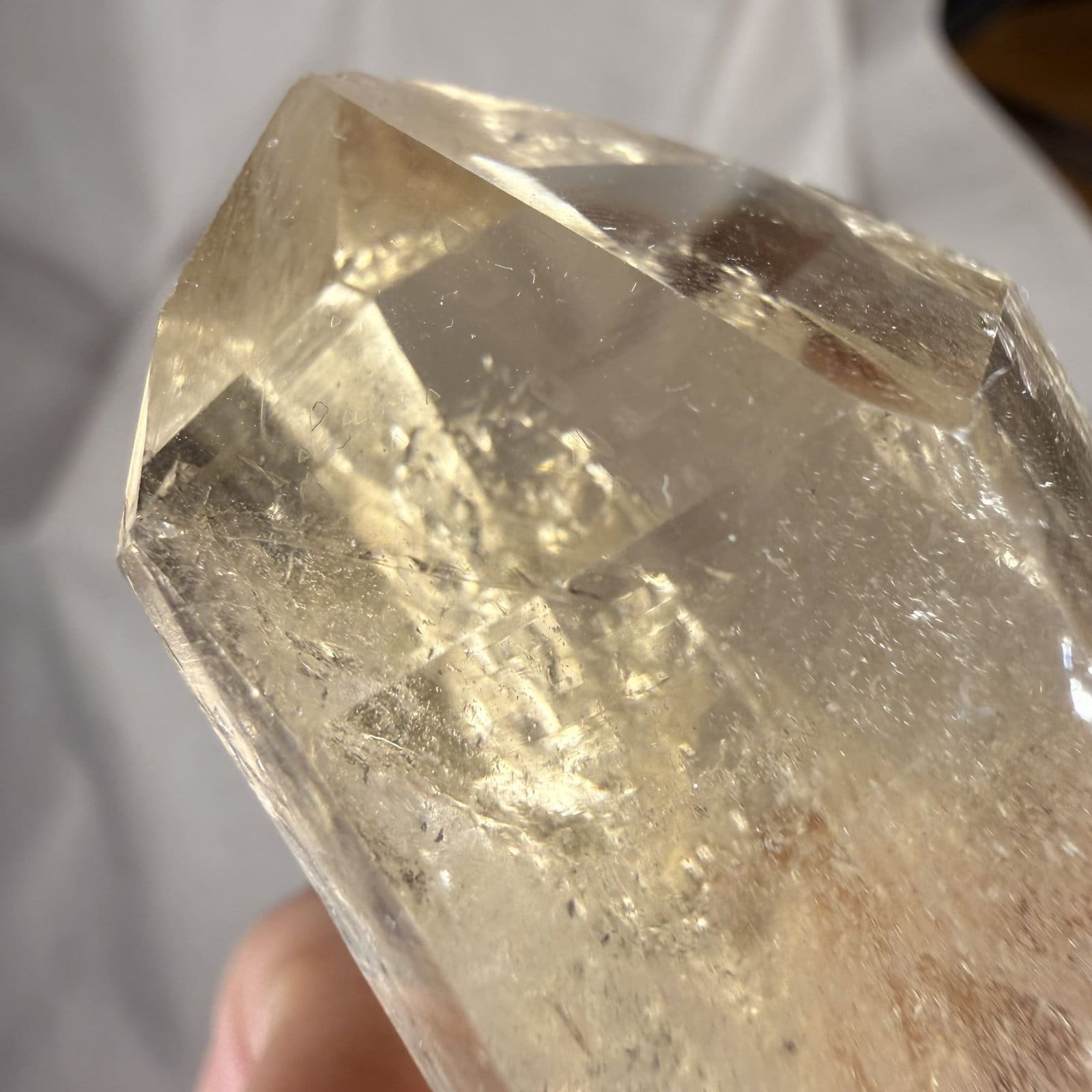Deze Skardu citrien komt uit het berggebied rond Skardu in Noord Pakistan. Citrien is een zeldzame gele variëteit van kwarts en ontstaat wanneer aluminium in het kristal lang genoeg wordt blootgesteld aan natuurlijke straling. In het Skardu gebied groeien deze kristallen diep in hydrothermale aders, hoog in de Himalaya.