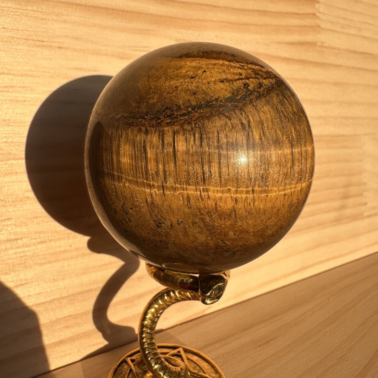 Mooie, met de hand geslepen bol van Tijgeroog. Je ontvangt het exacte stuk zoals afgebeeld op de foto’s.