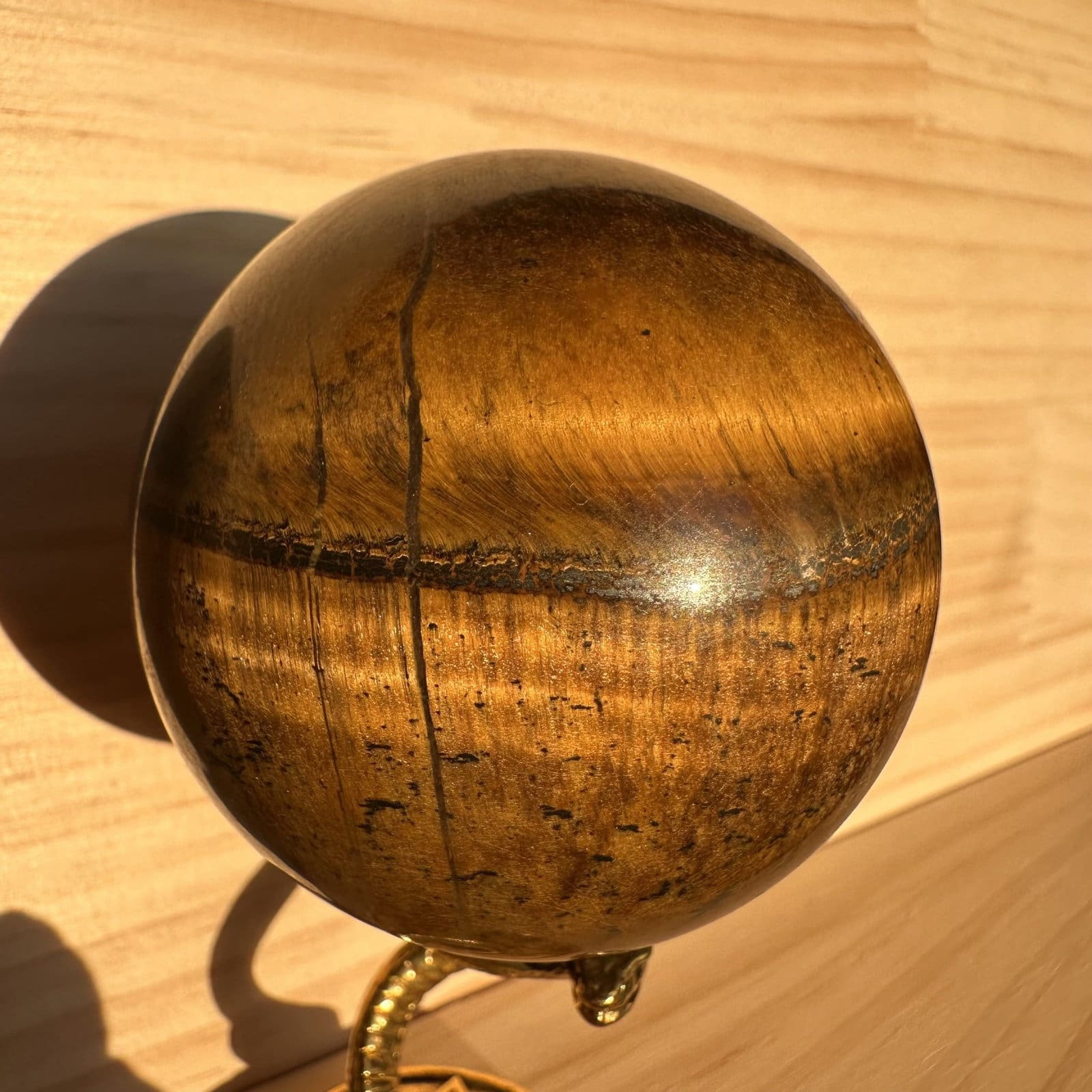 Deze tijgeroog bollen zijn afkomstig uit Zuid Afrika, een van de bekendste en meest gewaardeerde vindplaatsen van dit mineraal. Tijgeroog staat bekend om zijn warme goudbruine tot honingkleurige tinten en het karakteristieke zijdeachtige glanseffect dat ontstaat door de vezelige structuur in de steen. Wanneer je de bol draait in het licht, zie je dit effect prachtig meebewegen over het oppervlak.