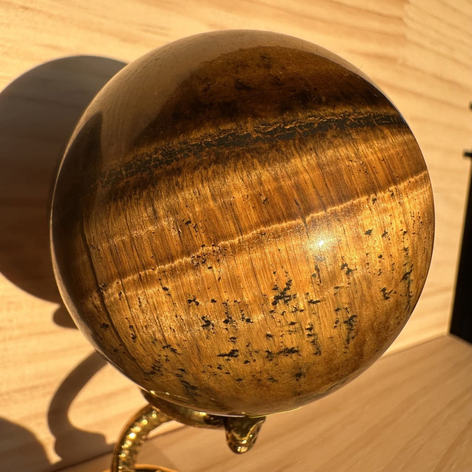 Mooie, met de hand geslepen bol van Tijgeroog. Je ontvangt het exacte stuk zoals afgebeeld op de foto’s.
