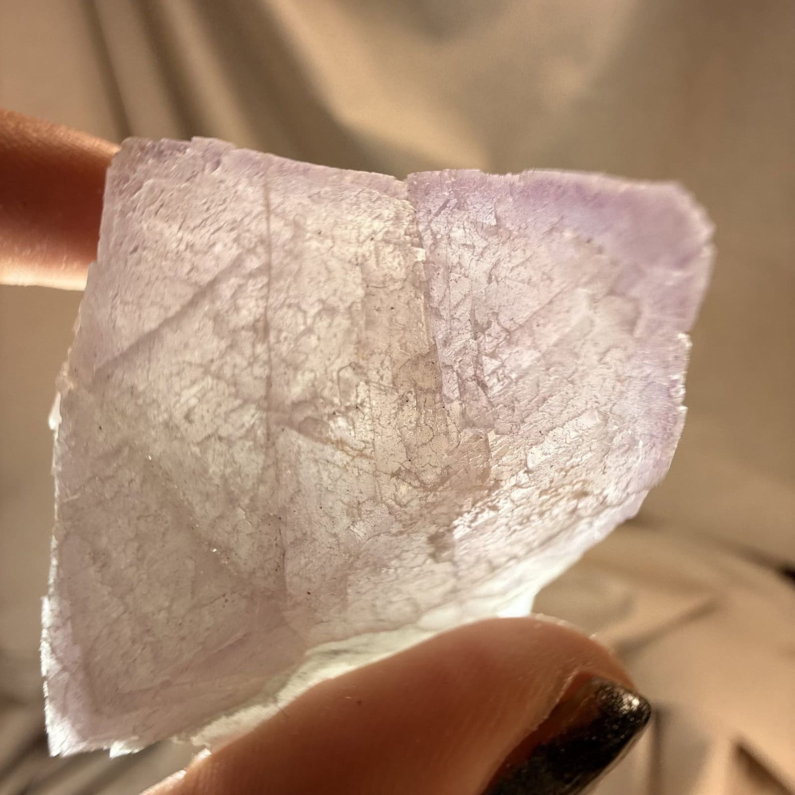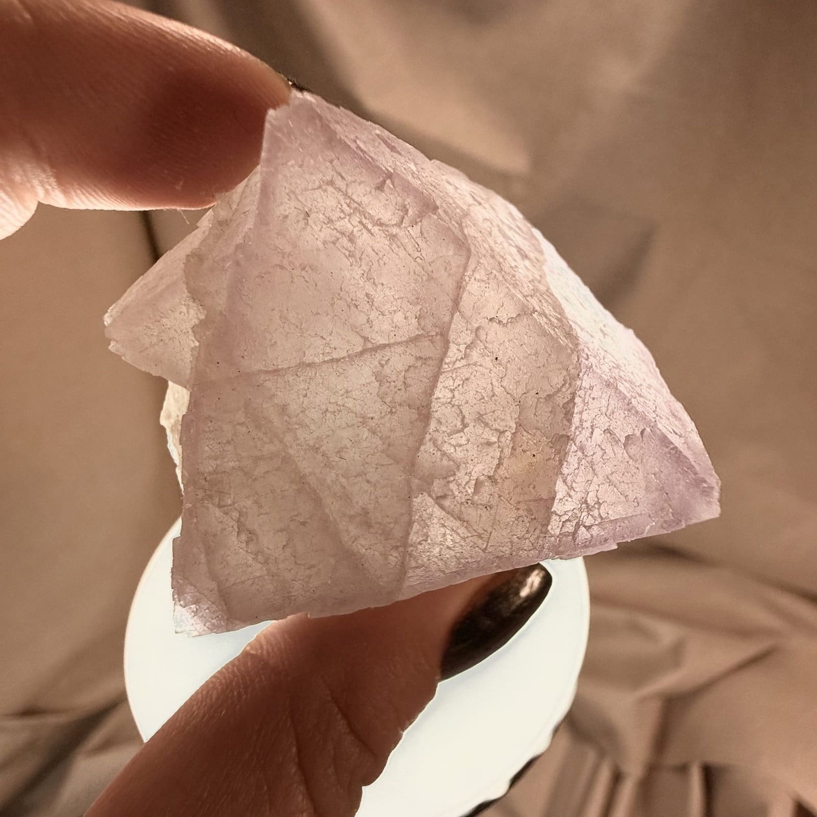 Prachtige lavendel fluoriet uit Zhejiang, China. De meeste stukken zijn gefotografeerd op een lamp om de transparantie goed te laten zien. Je ontvangt exact het stuk zoals afgebeeld op de foto’s.Â