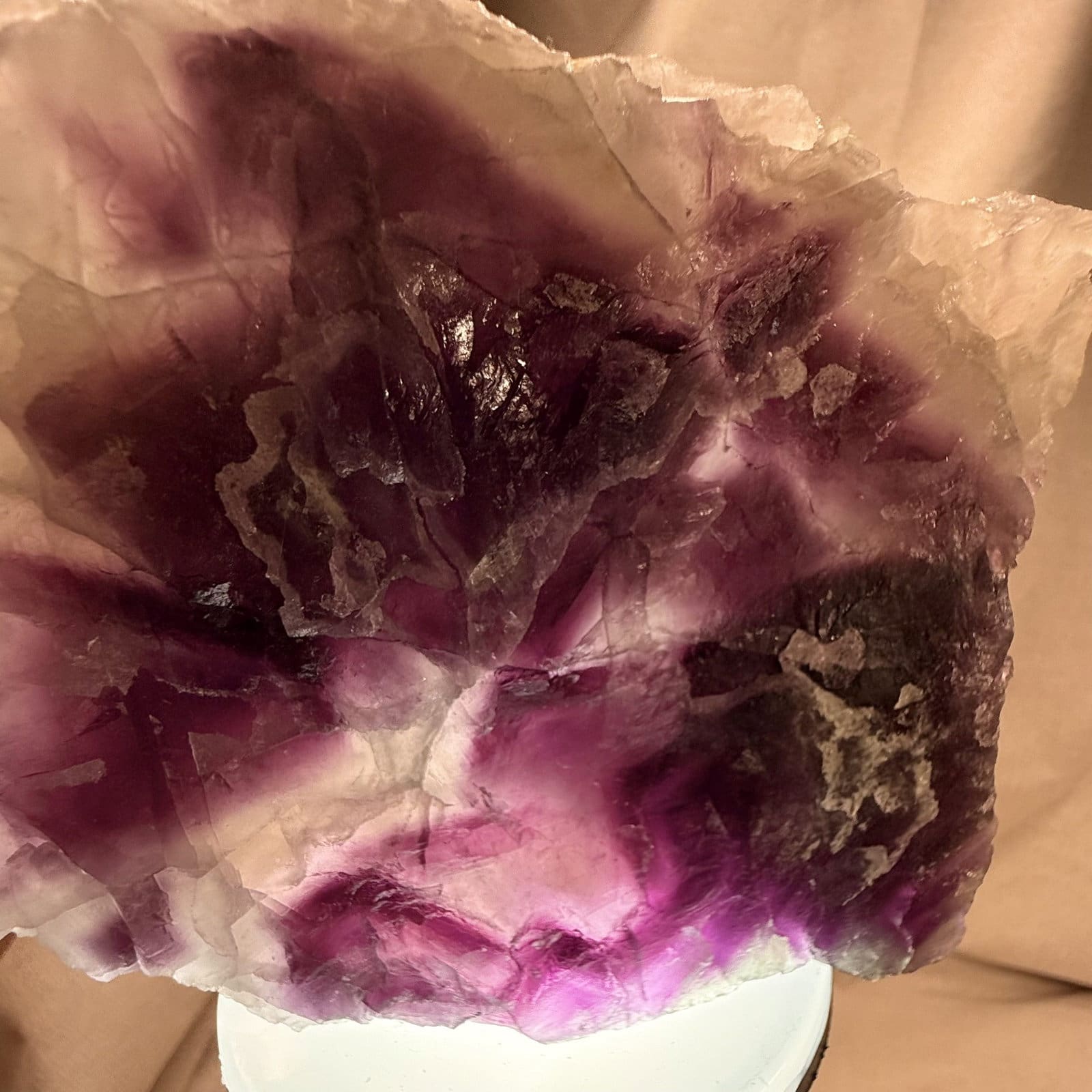 Prachtige lavendel fluoriet uit Zhejiang, China. De meeste stukken zijn gefotografeerd op een lamp om de transparantie goed te laten zien. Je ontvangt exact het stuk zoals afgebeeld op de foto’s.Â