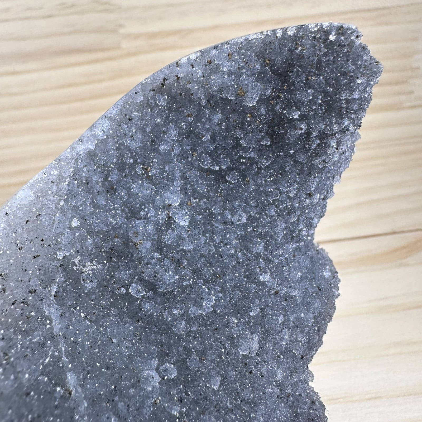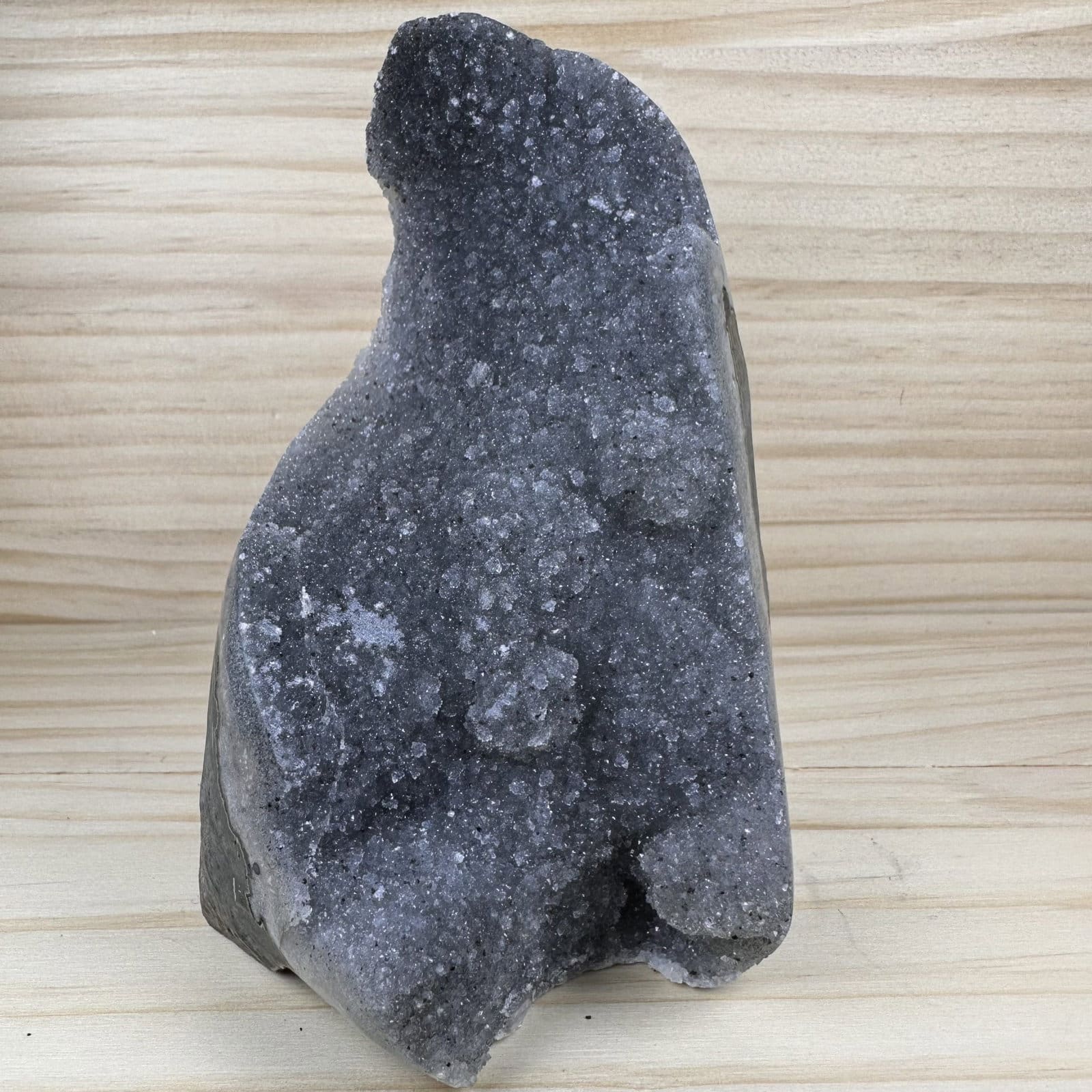 De (meestal) amethist bij dit soort type kwarts, heeft een grote hoeveelheid ijzer insluitingen waardoor het zwart is gekleurd. Dit is een natuurlijk proces en deze stukken worden vaak galaxy amethist genoemd. In feite is het dus eigenlijk geen amethist meer. Je ontvangt exact het stuk dat is afgebeeld op de foto’s.