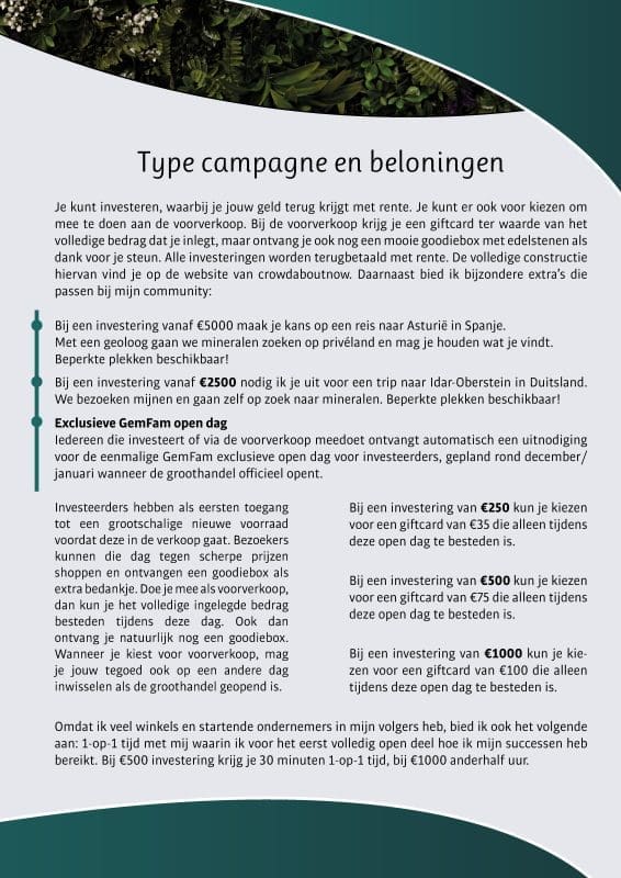 Bij een voorverkoop van €250 of meer ontvang je bovendien een persoonlijk samengestelde goodiebox vol edelsteenverrassingen.